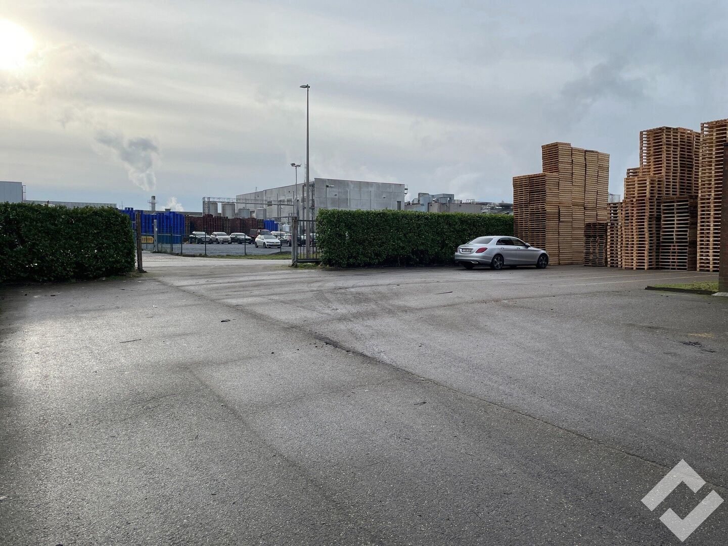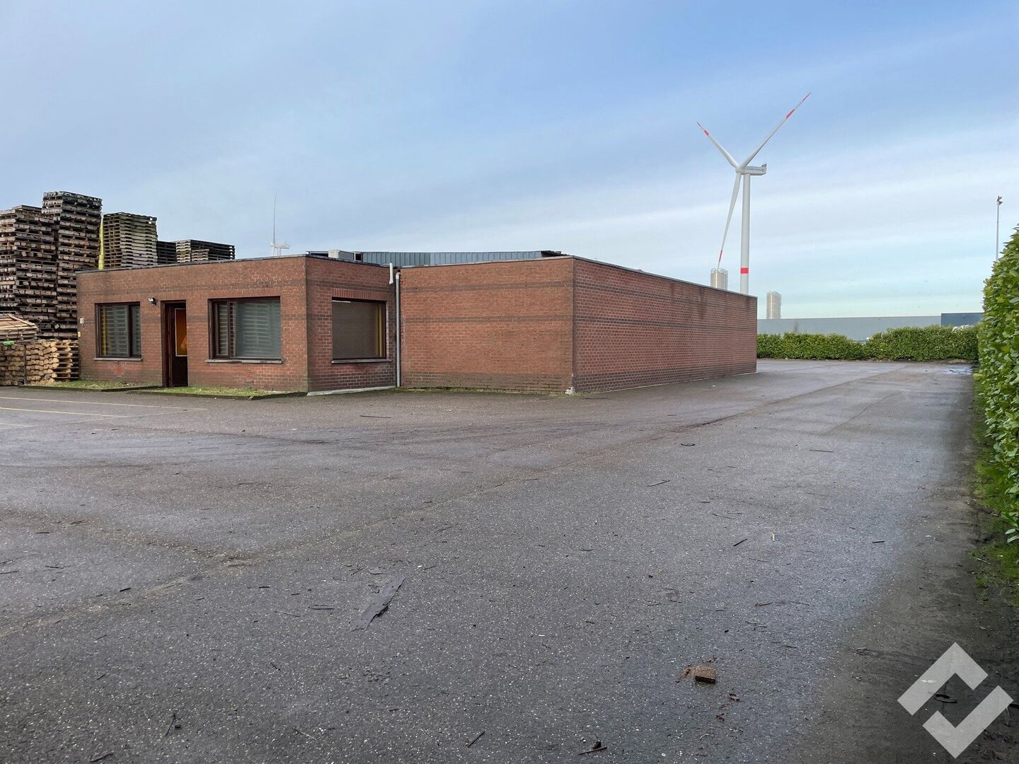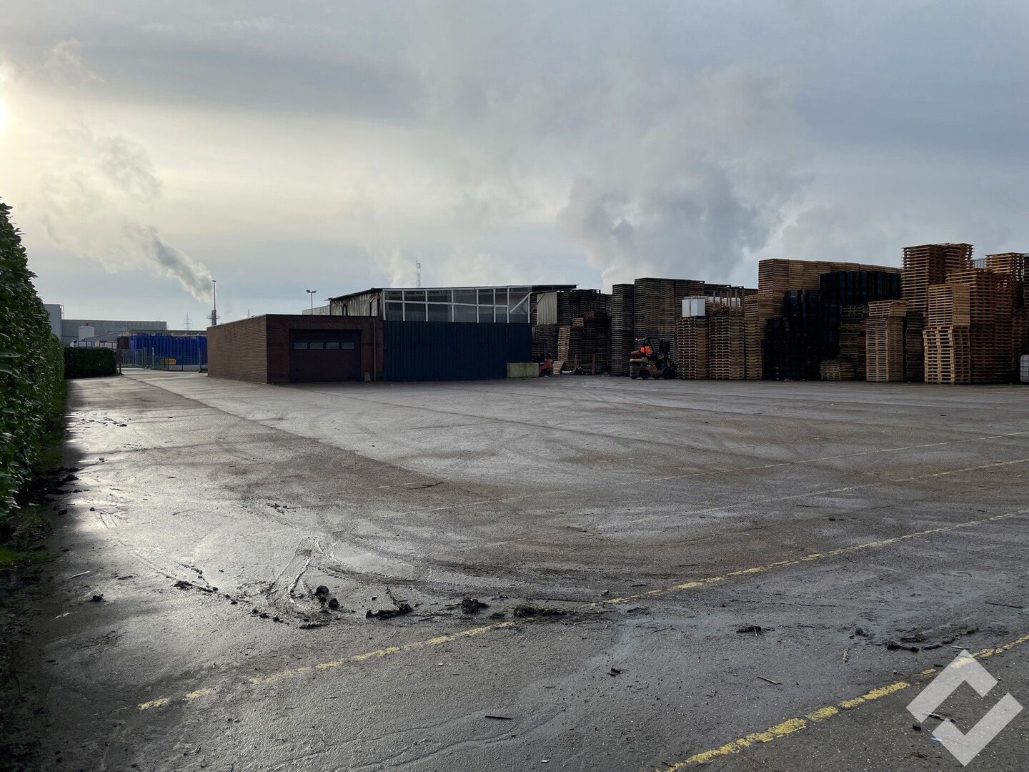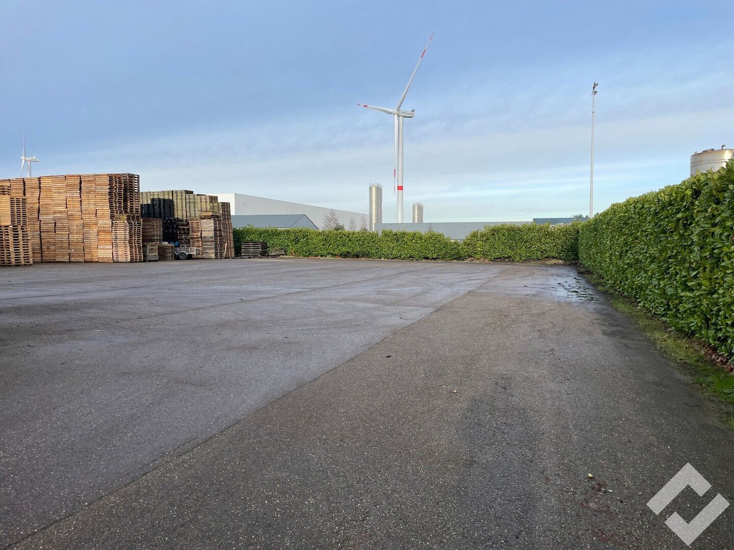 Verhard terrein te huur in industriezone Maatheide te Lommel. Het terrein heeft een oppervlakte van ca. 1.790m2 en is met asfalt verhard. Het volledige terrein is omheind en kan vooraan afgesloten worden met een schuifpoort. Het gebouw bestaat uit een kantoor, lunchroom, sas en opslag/werkplaats met garagepoort. Een ideale gelegenheid voor buitenopslag van goederen! (Let op, 1.790m2 is niet het volledige perceel).