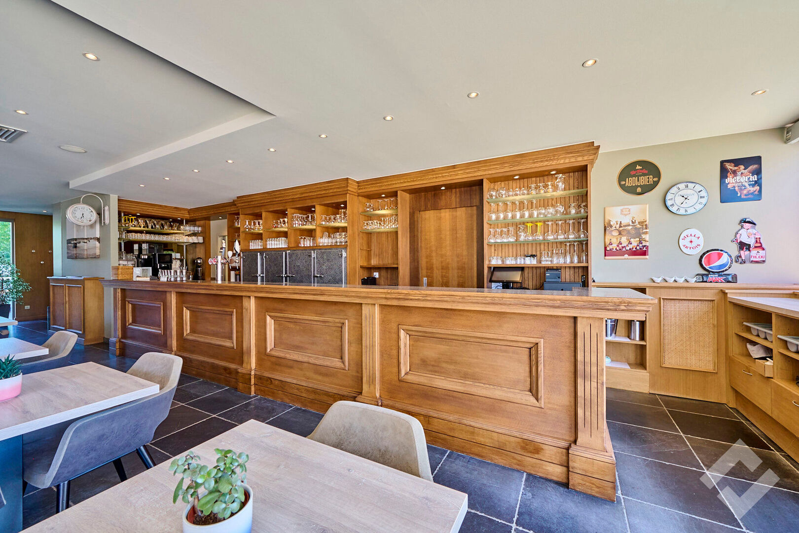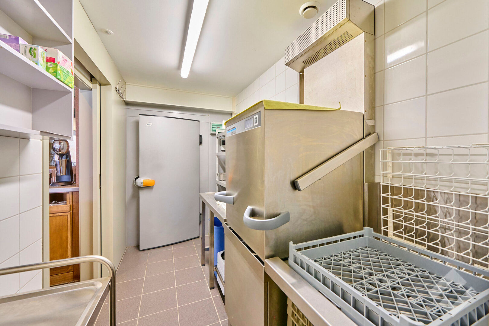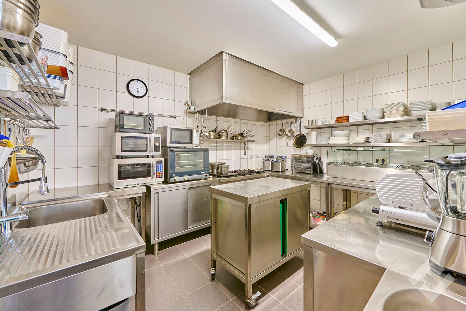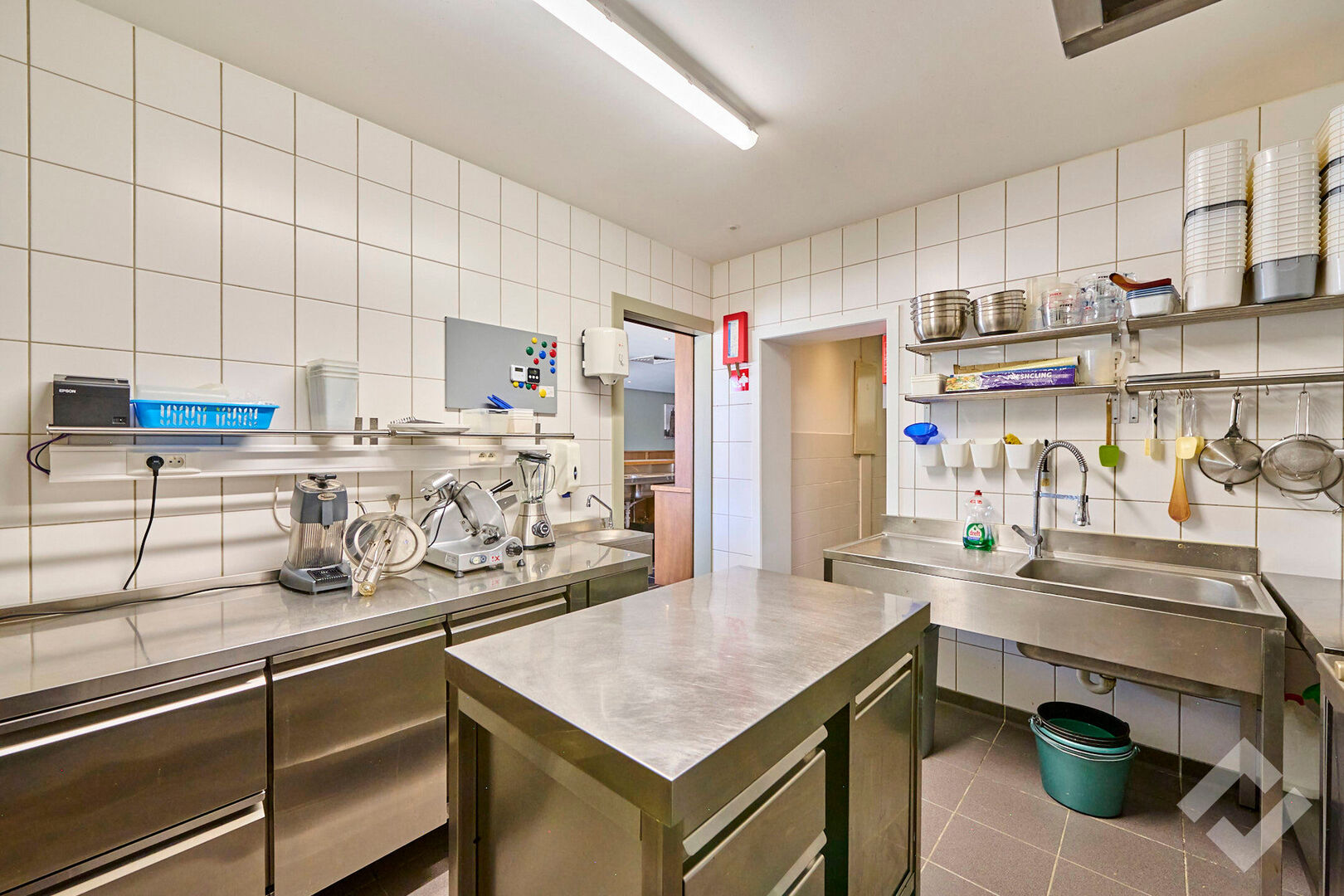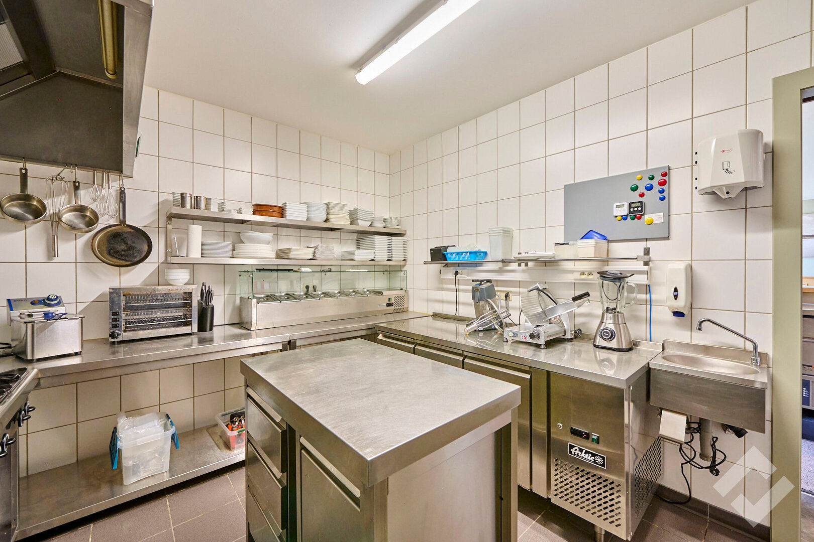 Het pand is volledig ingericht voor horecagebruik en beschikt over een professionele keuken met alle benodigde apparatuur, inclusief een afwasruimte met een professioneel afwasmachine en een koelcel met vriescel voor verse producten. Aan de voorzijde vindt u een toog met ingebouwde koelkasten, een afwasmachine, een glazenspoeler en een koffiemachine. Het gezellige zitgedeelte heeft een open indeling en een overvloed aan natuurlijk licht, wat zorgt voor een aangename sfeer.