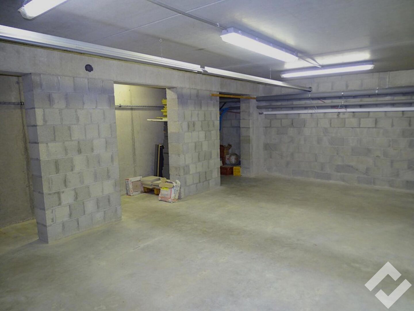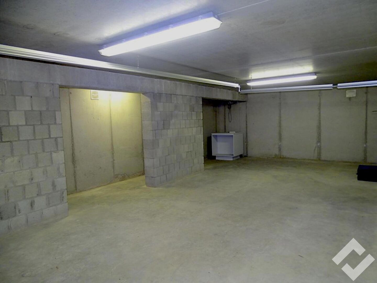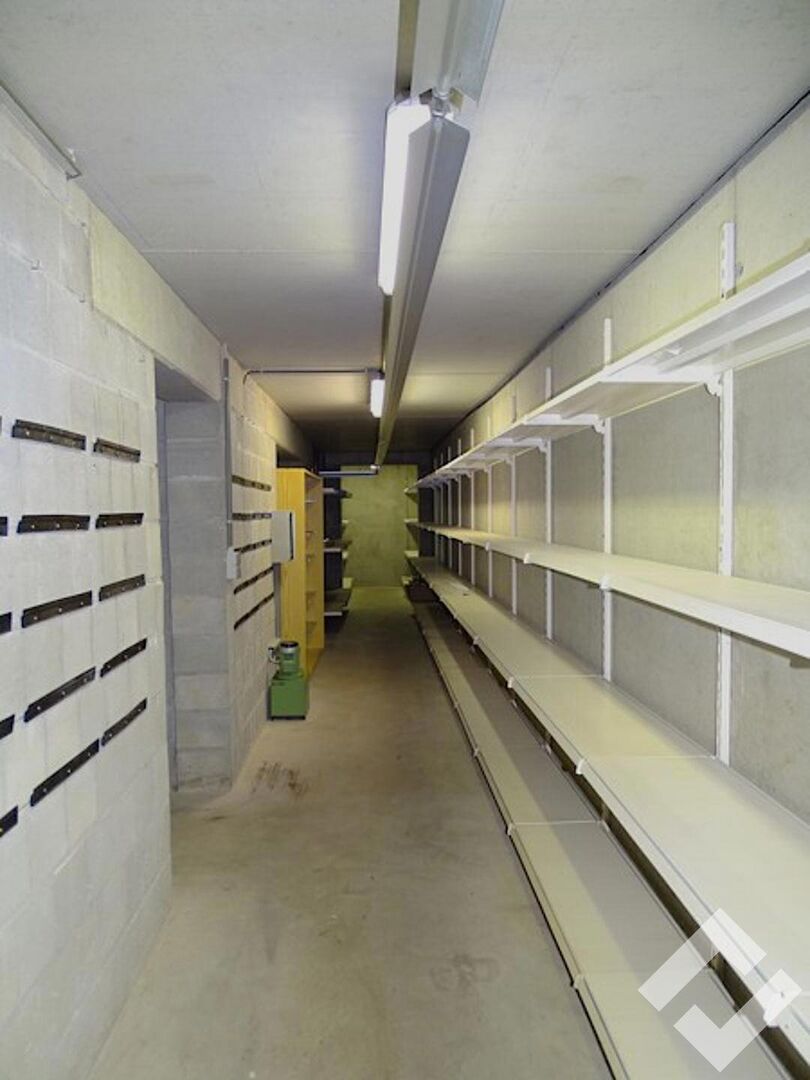 Tussen de commerciële ruimte en het magazijn is er een goederenlift en trap naar de kelder. De kelder heeft een oppervlakte van ca. 200m2 en geeft zo heel wat ruimte voor opslag van goederen.