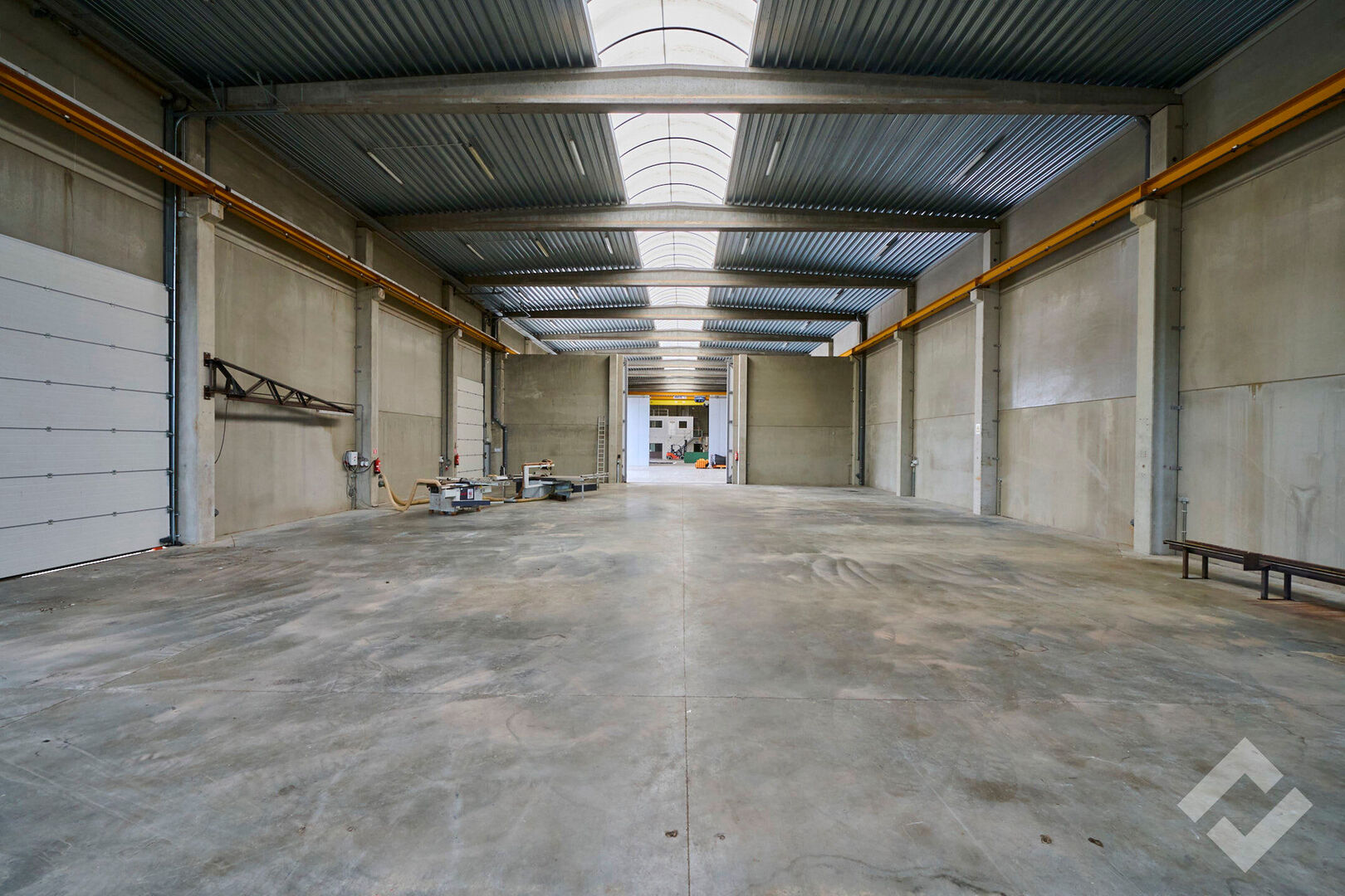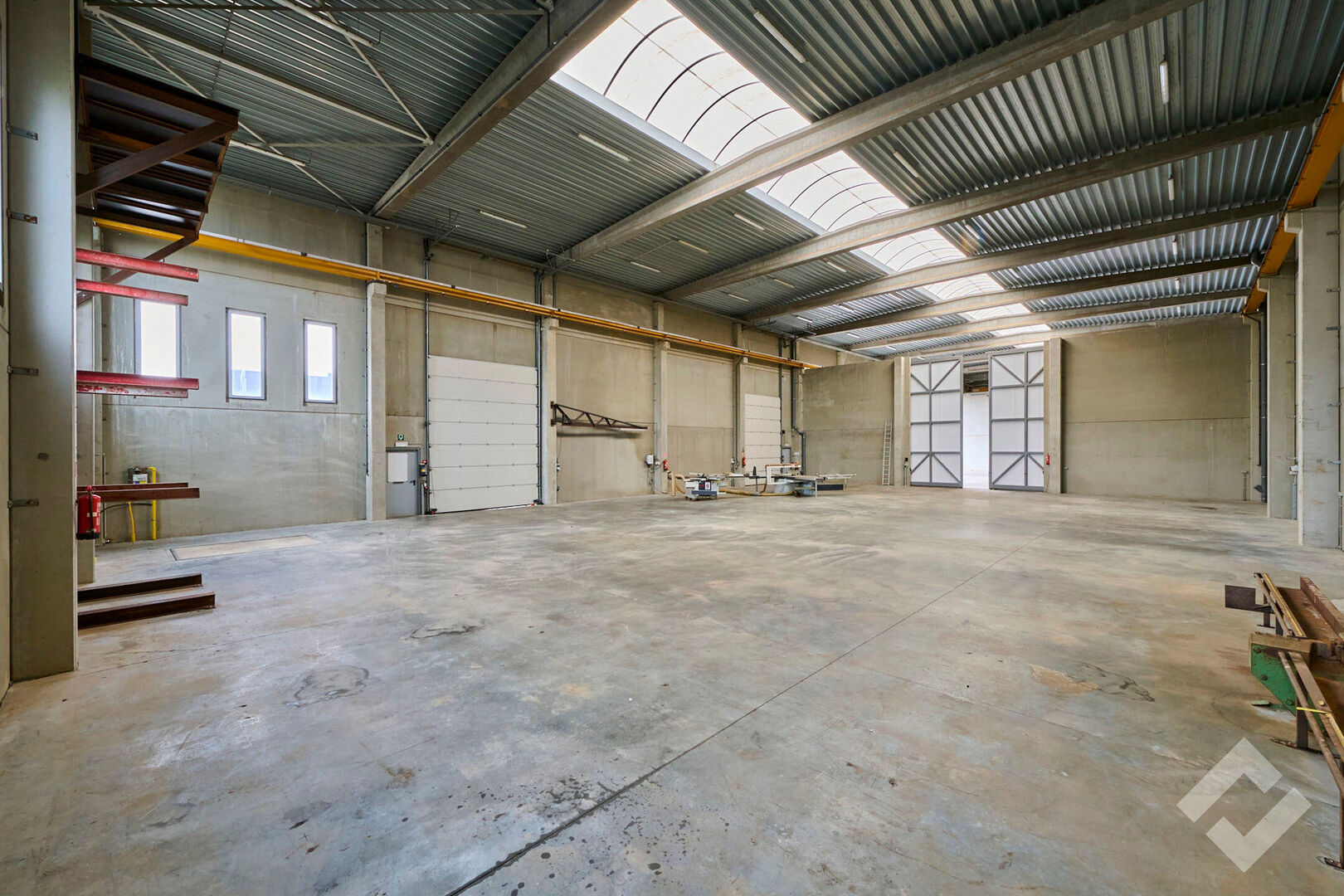 Uitzonderlijk bedrijfsgebouw te huur in industriezone Driehoek te Balen. De bedrijfshal is opgetrokken in stevige betonbouw en verdeeld in twee ruime compartimenten van respectievelijk 604m² en 483m², gescheiden door een centrale luifel van 470m². Deze bedrijfshal is voorzien van twee rolbruggen (8 ton + 10 ton), stroompunten (220V+380V) rondom, automatische sectionaalpoorten, zeer draagkrachtige industriële betonvloer, lichtstraat en verlichting, persluchtleidingen, edm. De compartimenten zijn opengemaakt zodat de rolbruggen overal kunnen worden ingezet. De hal heeft een een vrije hoogte van ca. 8m.