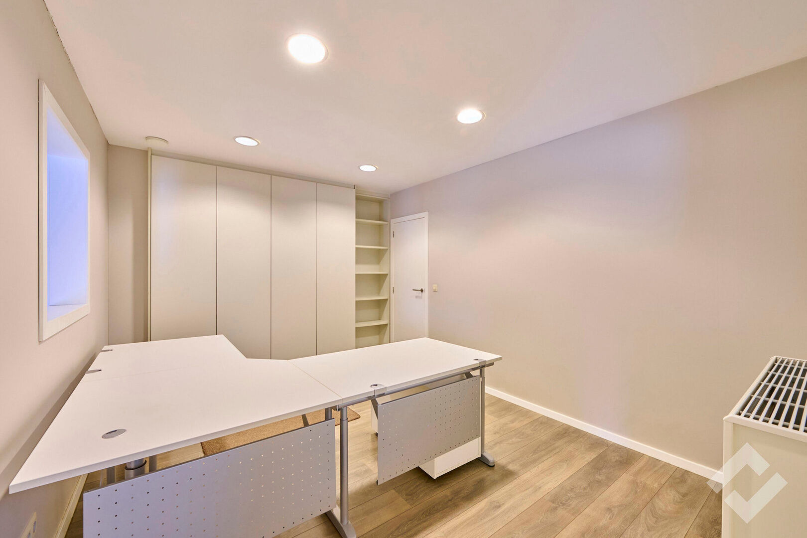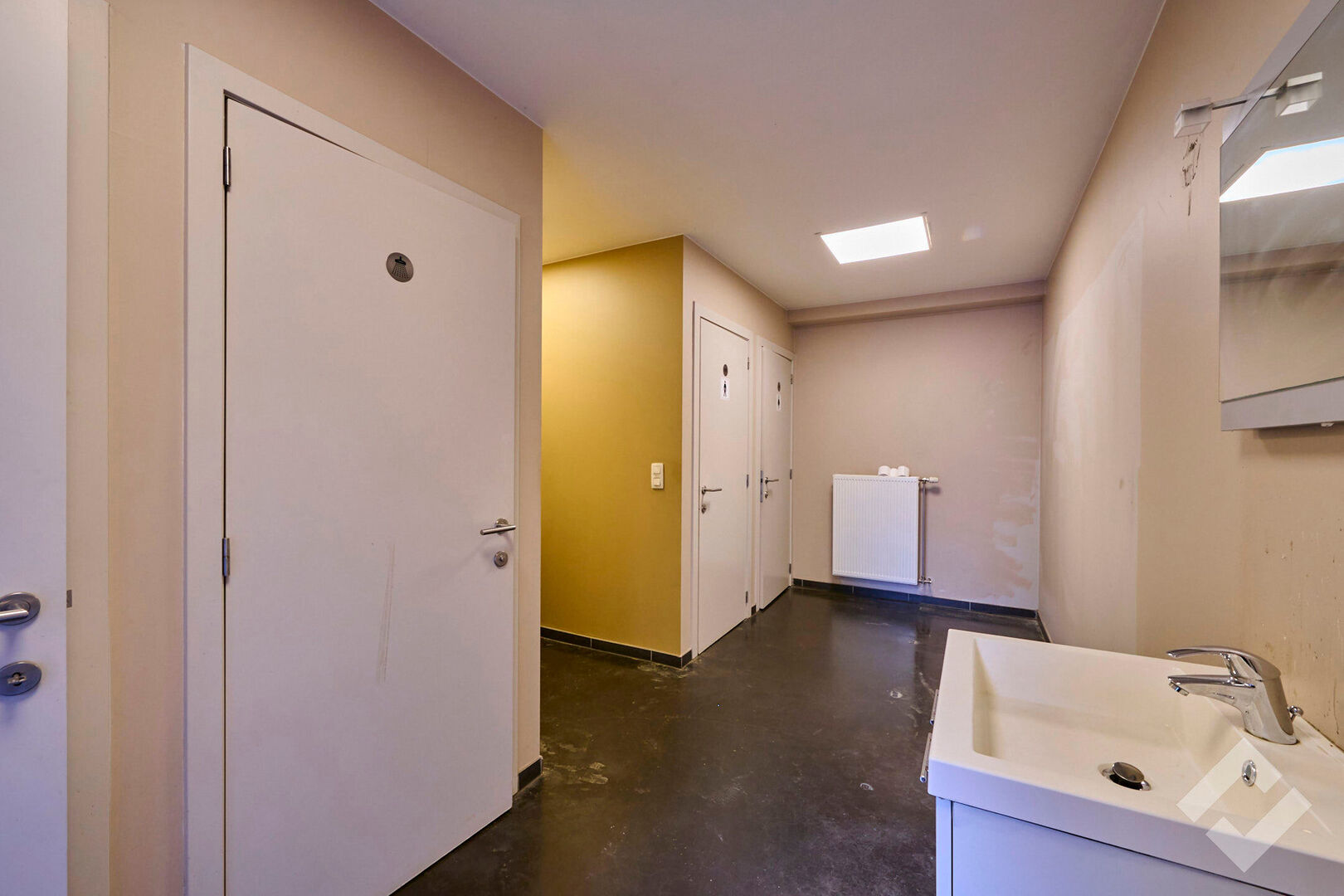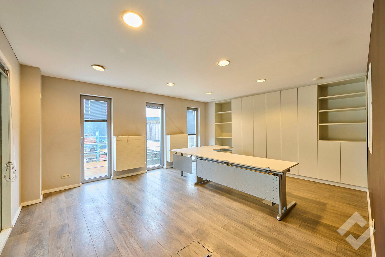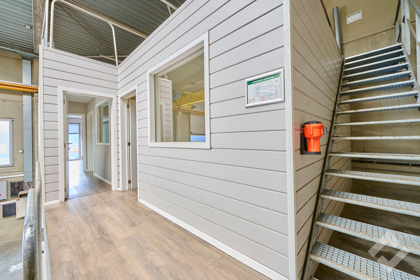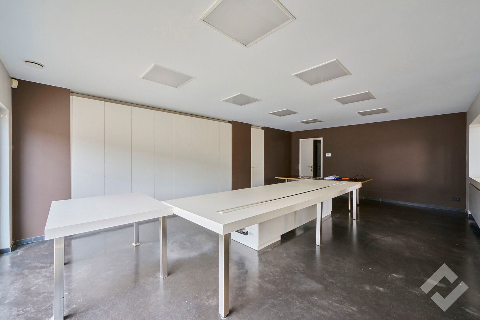 Het gebouw beschikt over comfortabele kantoorruimtes (220m²) die zowel via de hal als direct vanaf het terrein bereikbaar zijn. Op het gelijkvloers vindt u een ruime ontvangstruimte/kantoor met ingebouwde kasten en airco, evenals archiefruimte en sanitaire voorzieningen. Op de eerste verdieping bevinden zich twee volledig uitgeruste kantoren en een breakroom met kitchenette. De kantoren zijn voorzien van voldoende stroompunten, internetaansluitingen, inbouwkasten en airco, voor een moderne en functionele werkomgeving.