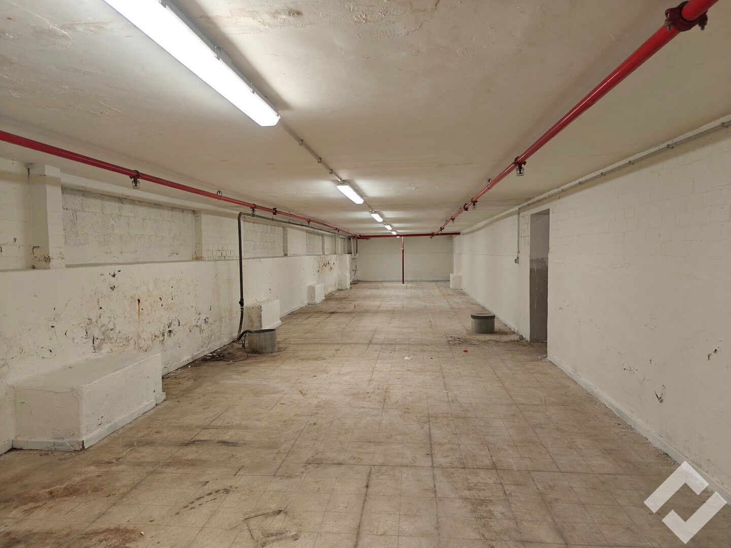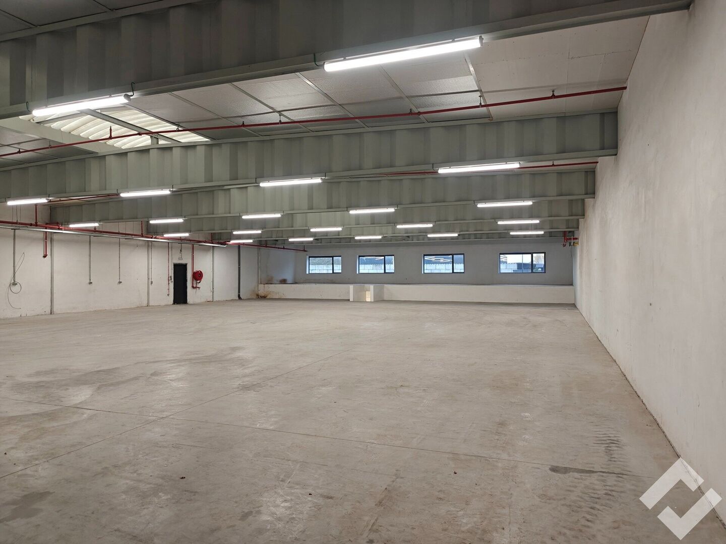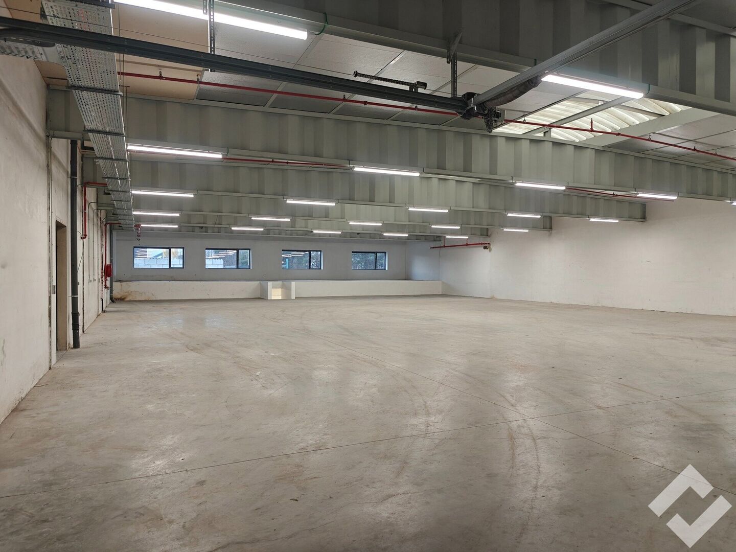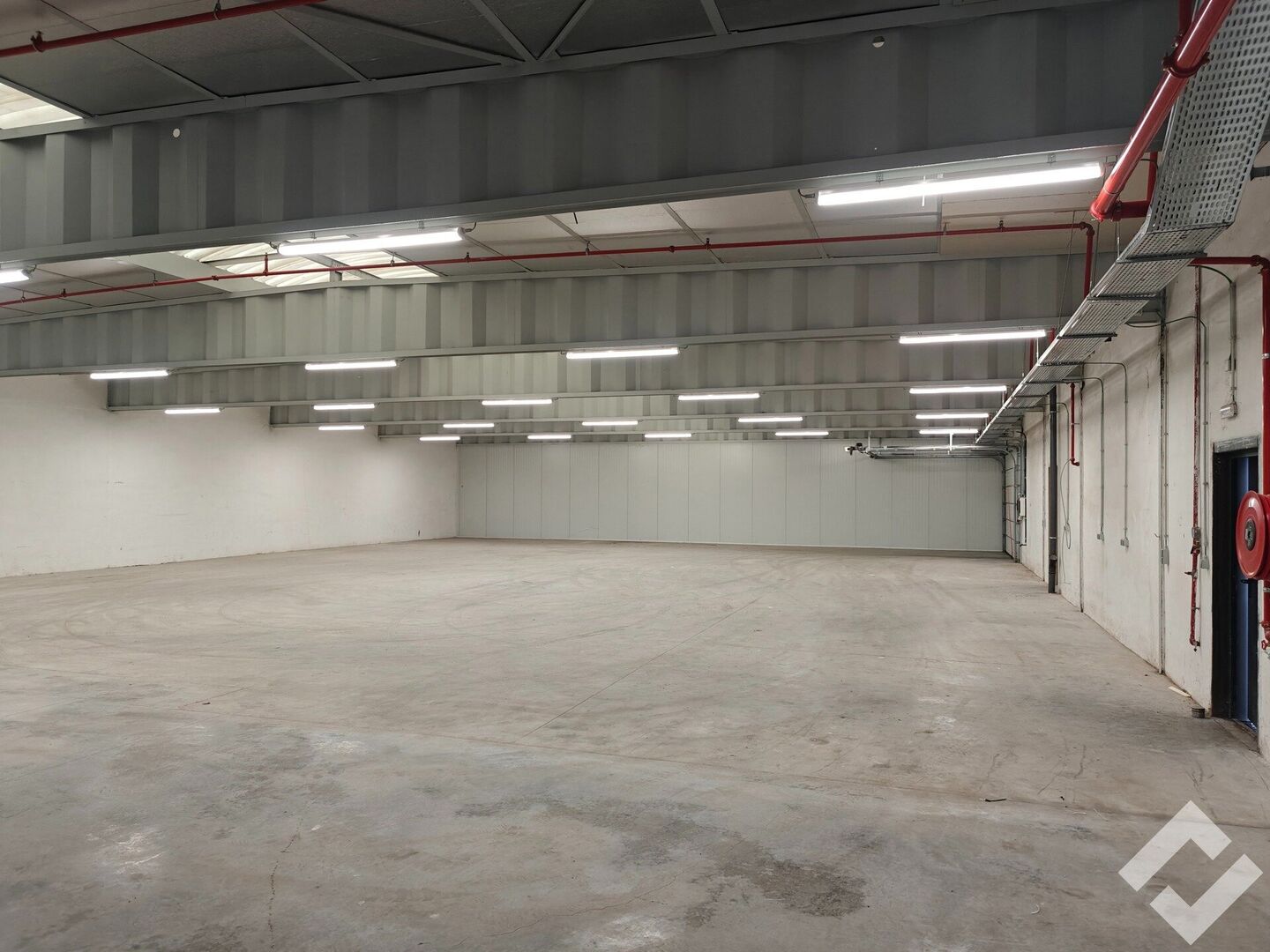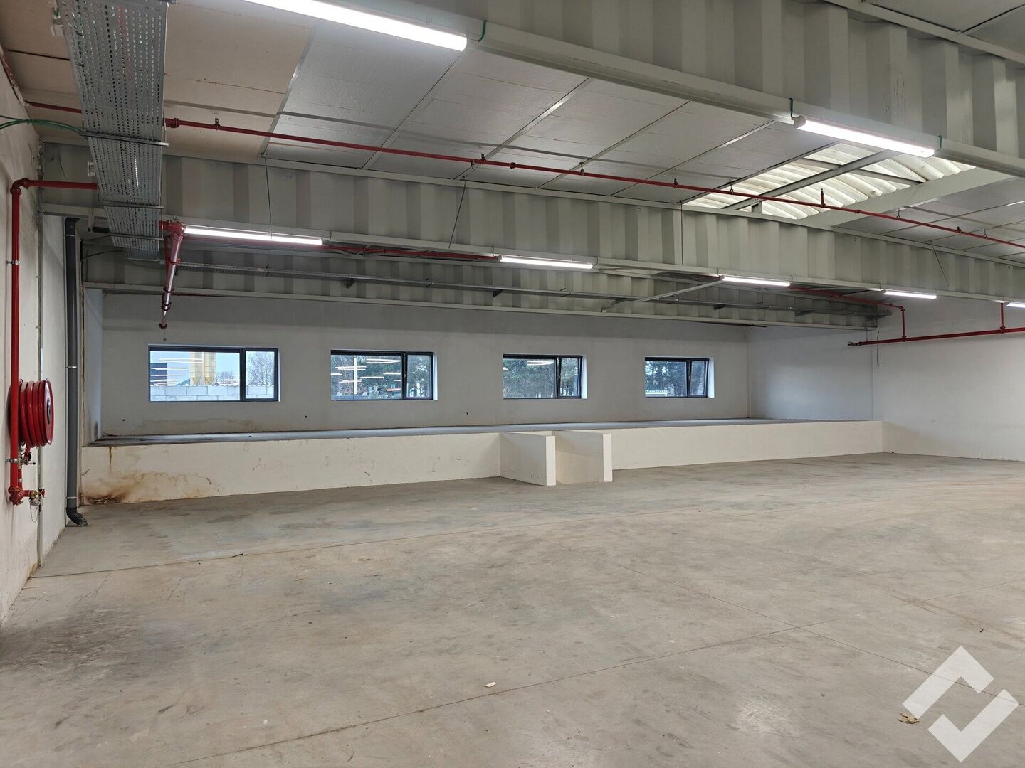 Gelegen vooraan op de site wat goede visibiliteit garandeerd! Door de ramen vooraan is er een mogelijkheid tot het maken van kantoren. Er is een bruikbare vloeroppervlakte van 700m2 met voorzieningen zoals automatische sectionaalpoort, gepolierde betonvloer, stroompunten (220V/380V), sprinklersysteem en voldoende verlichting. Er is een vrije hoogte van ca. 4,5m onder dak (3,6m onder overspanning). De site zelf is voorzien van parkeerplaatsen, voldoende buitenverlichting en is tevens volledig omheind. Deze unit beschikt over eigen sanitair en een kelder.
